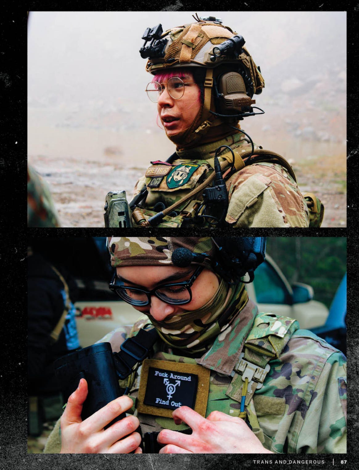I went to meet with some of these trans people who’re training to ensure they actually can be “dangerous back” if they’re attacked. In Eugene, Oregon, I met with Mia Rose, a 31-year-old trans woman who not only advocates for the arming of trans and queer people, but trains her own unit as a tactical fire team that can provide community defence.